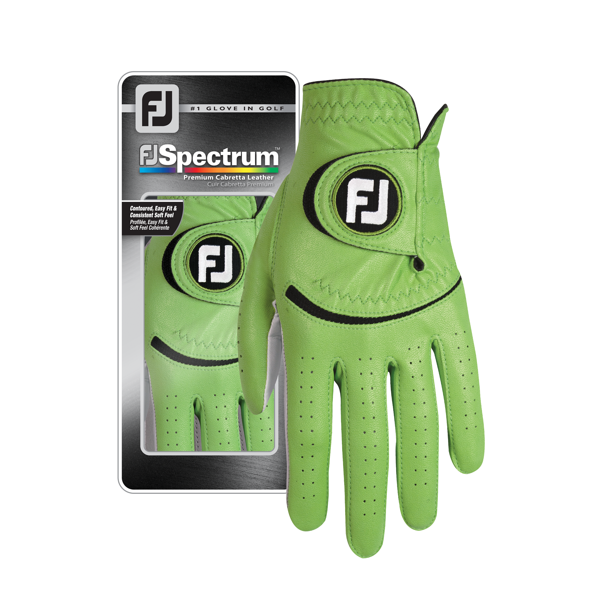Vibrant colours abound with men's FJ Spectrum golf gloves! These Cabretta leather golf gloves come with a FiberSof back that provides a premium feel with maximum breathability and flexibility.